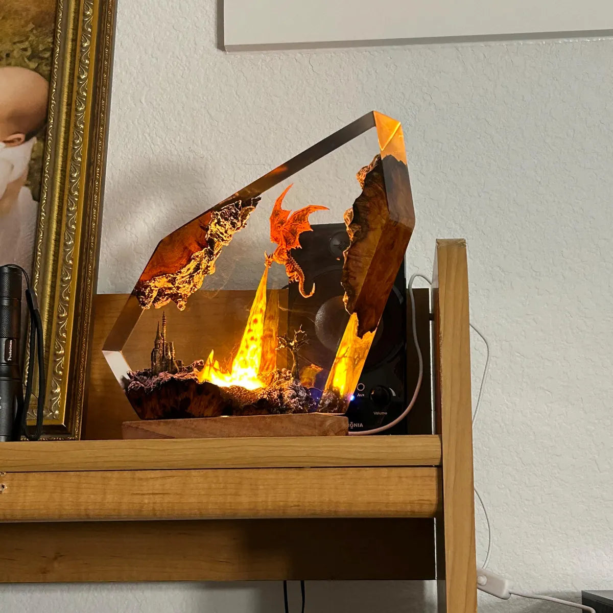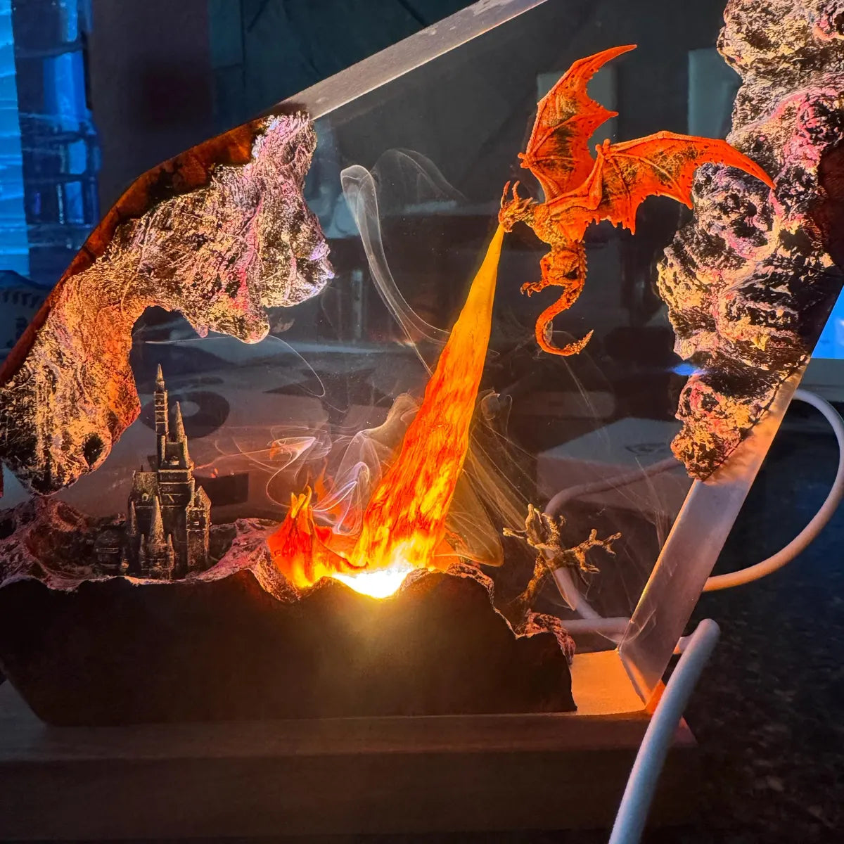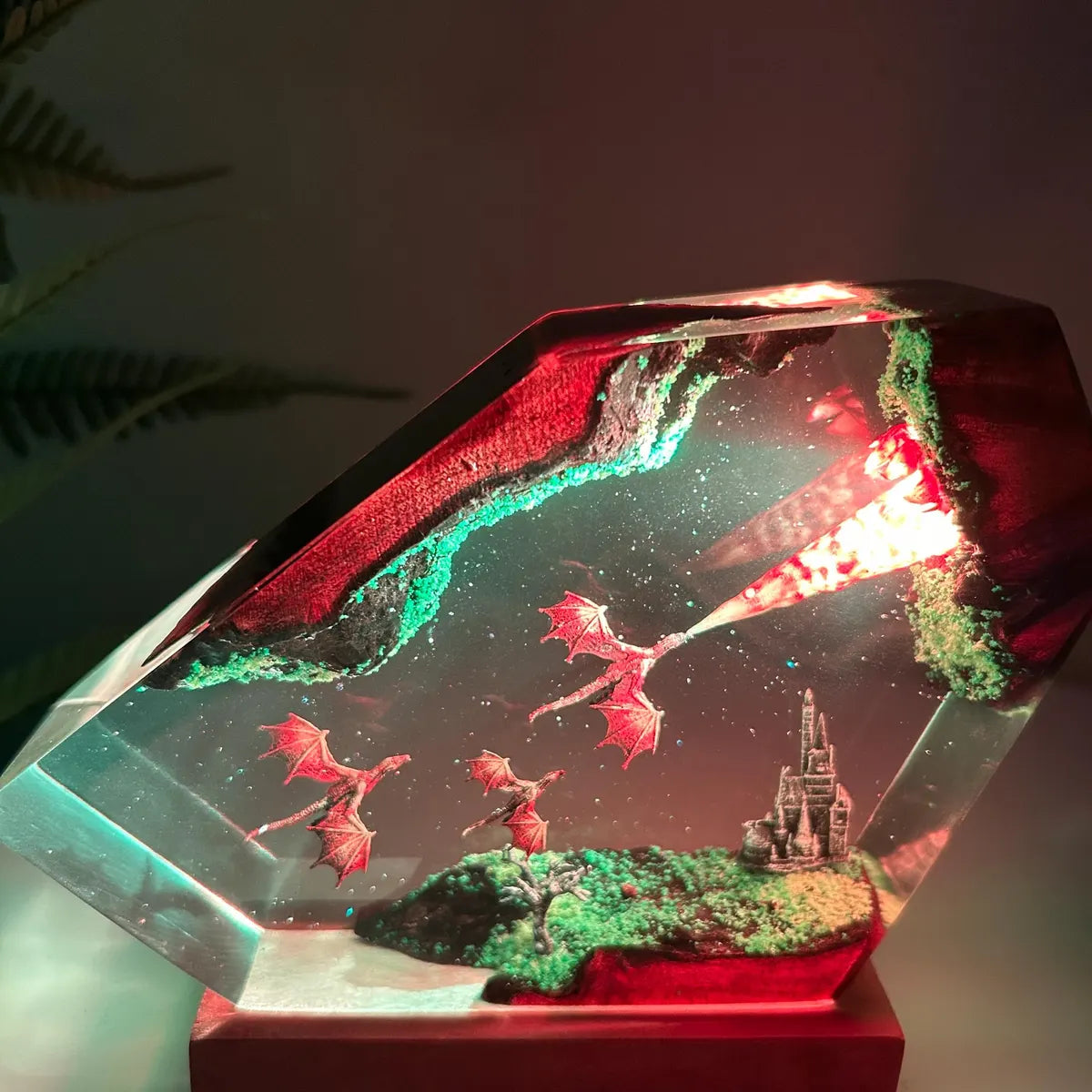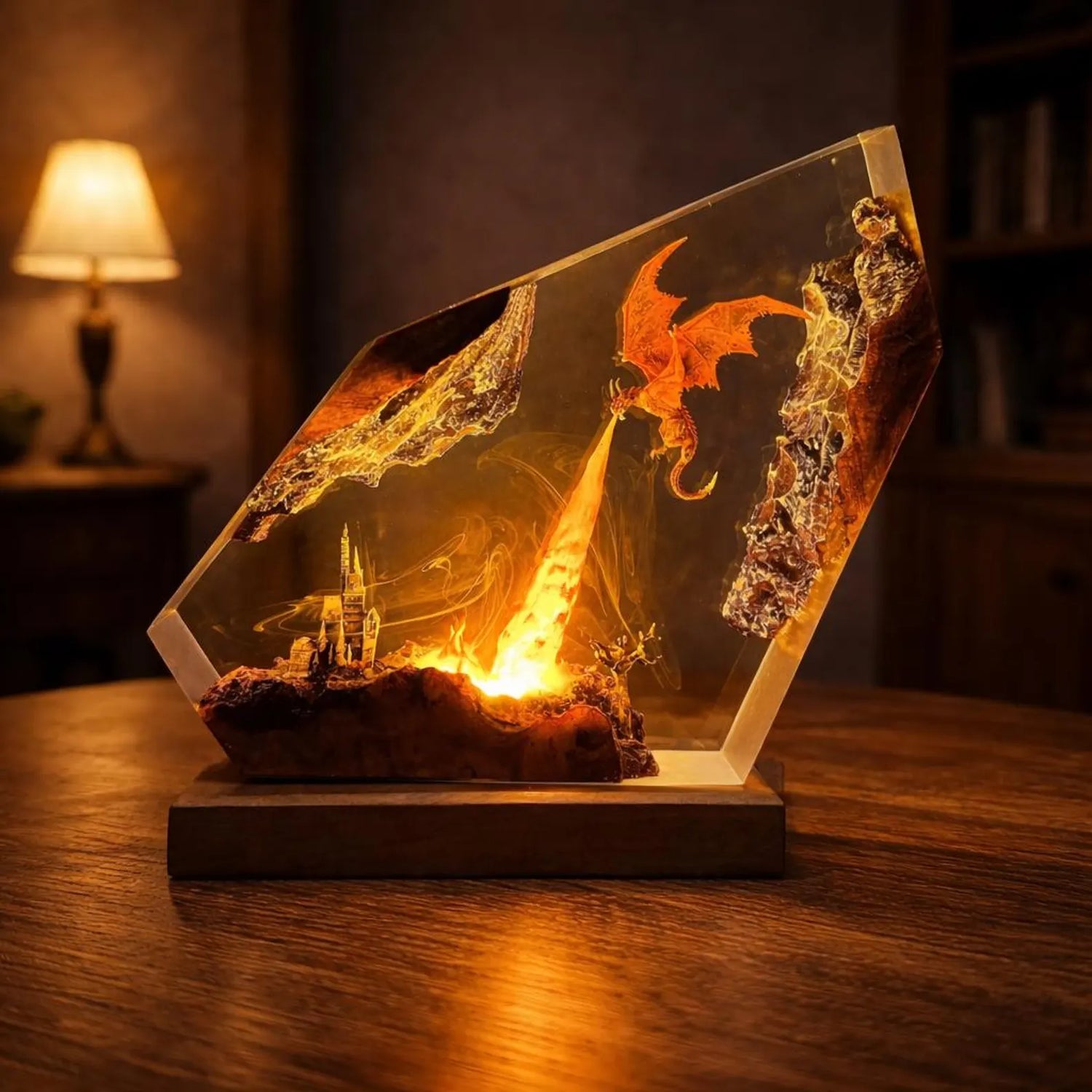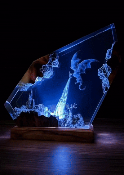Each piece is meticulously crafted using layered resin, vivid pigments, and intricate detailing to bring a living fantasy scene to life. From soaring dragons to glowing landscapes, every lamp is designed to transform your space — not just light it.