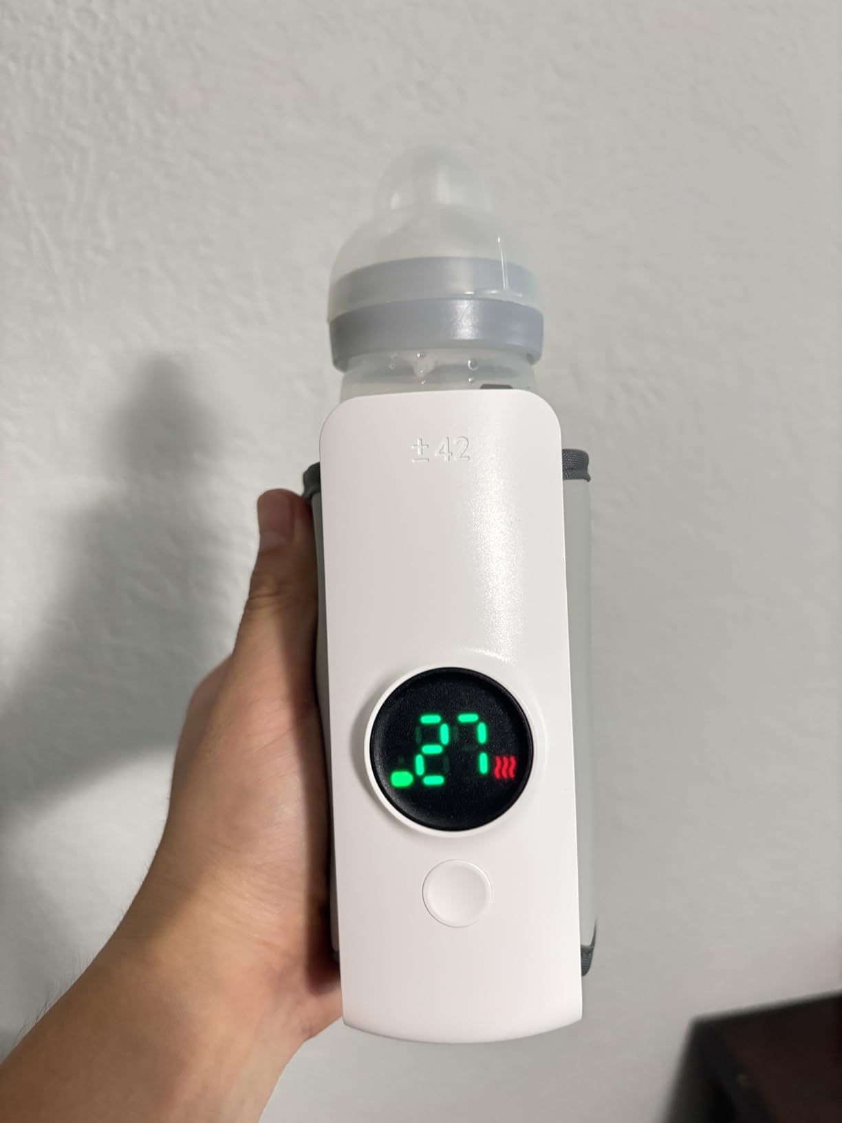 • I love this heater! I used to microwave bottles, but the temperature was always uneven. This heater warms it’s perfectly every time. No hot spots, no guessing. It gives me so much peace of mind, especially at night.
